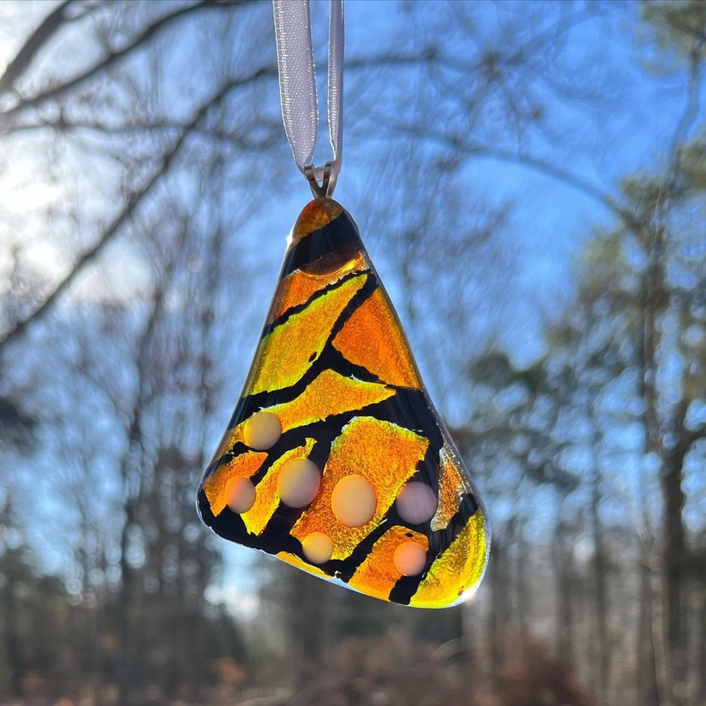 I’m in LOVE with my new glass monarch ornament from Jenny Thomas- Artistry !! 🧡🖤🤍🖤🧡 I have a monarch vase she made for me a few years ago that is so beautiful…. Actually, everything she makes is beautiful.