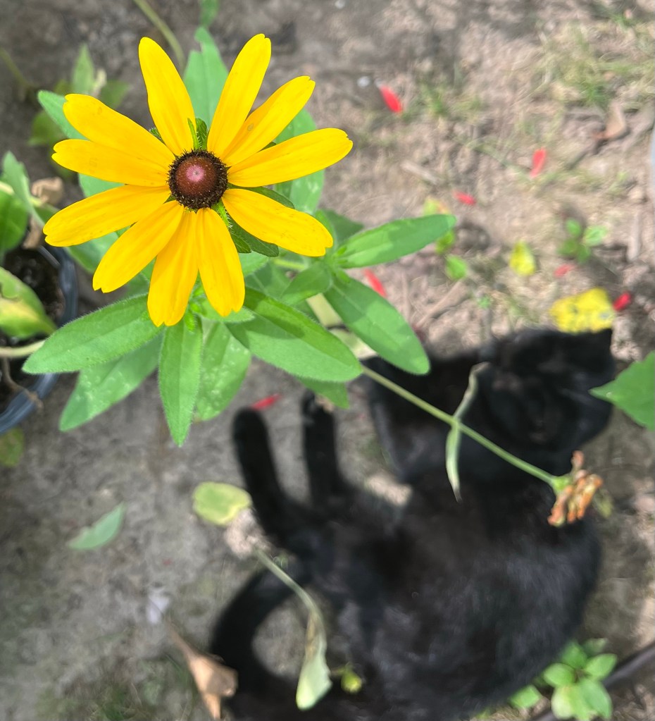 Everyone was HOT today.. Chucky made himself a canopy bed, Sunny D laid in the dirt, Obsidian didnโt stick around long and Flint wanted to sit on my lap. Freddy just looked angry and tired.. but we got a lot of stuff done outside and we didnโt get any more rain, thank goodness. ๐ง๏ธ
