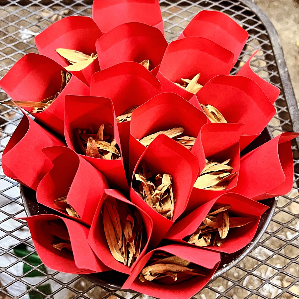 We had to cut down this huge tulip poplar today to have our septic system installed and it made me want to cry! Thereβs no telling how long that tree has been standing there. After it fell, I looked over and saw SEEDS!! So I collected 1,000 and planted them in buckets today .. so hopefully weβll have some baby tulip poplars in the spring. π The seed pods reminded me of little witch brooms too! π§ββοΈ π§Ή