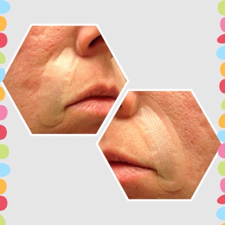 Last night I decided to use Acute Care on my “parentheses” around my mouth for the first time. One packet of Acute Care contains two patches, one for each side.